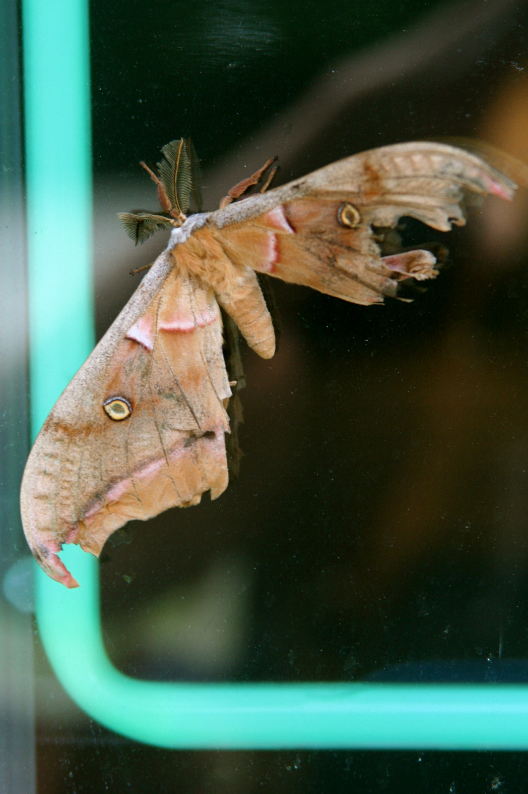 This luna moth was hanging out on the window of a store I visited today. Not sure if he was attracted by the lighted sign on the inside of the window or his reflection!